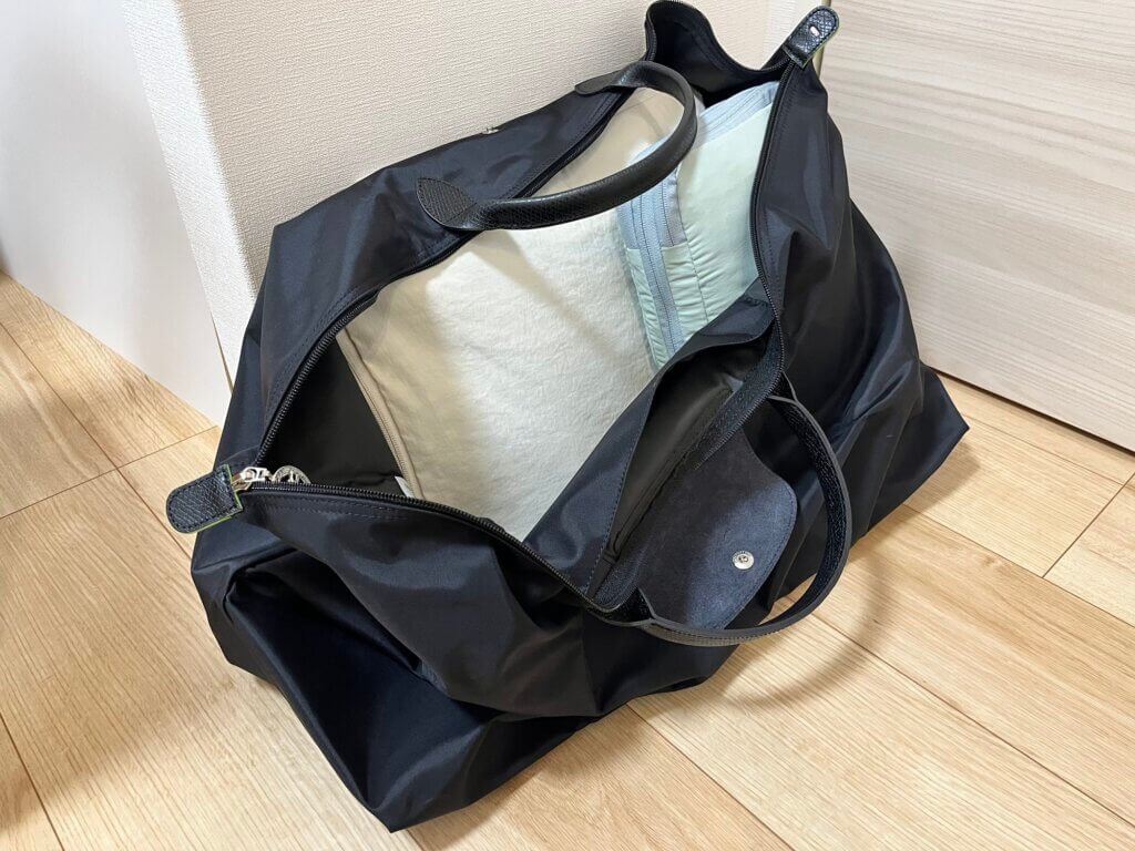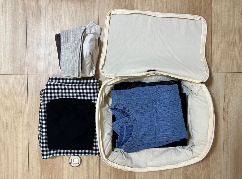 2~3泊の旅行や、冬の旅行でニットなどを持っていくことを考えてMではなくLサイズを購入しました。