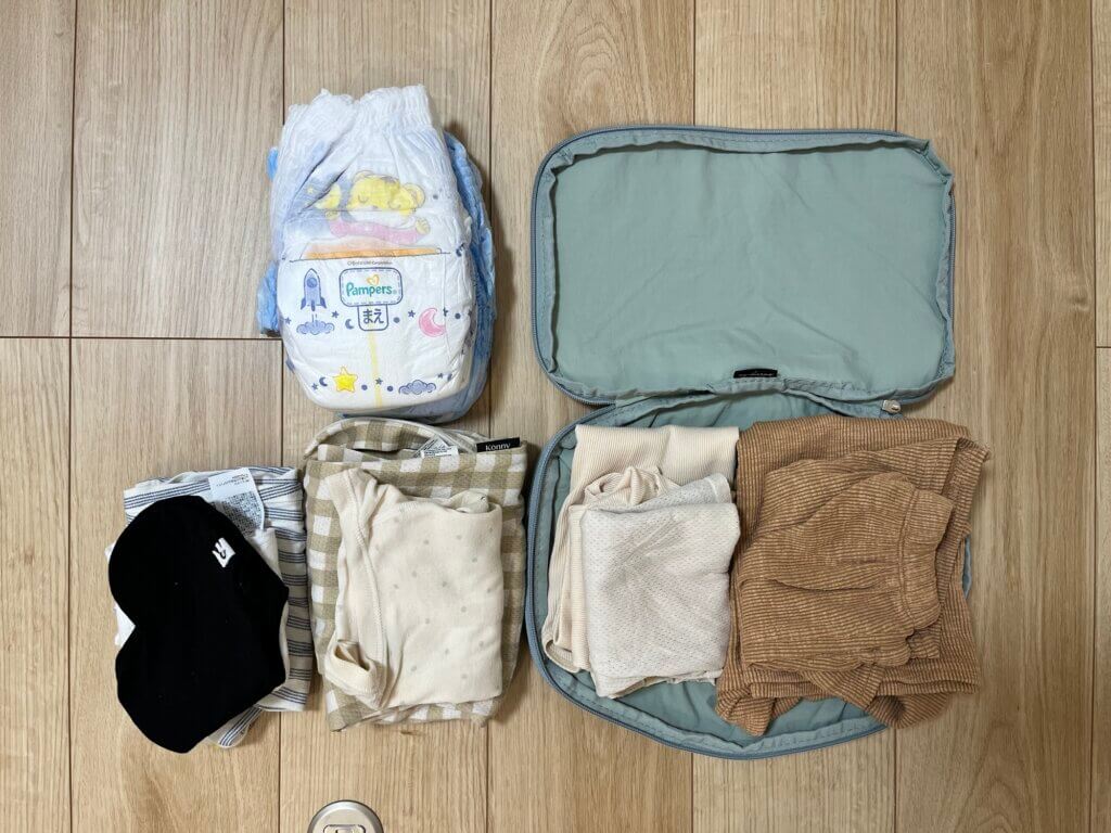 我が家はおむつだけでなく洋服も圧縮トラベルポーチを使っています。
