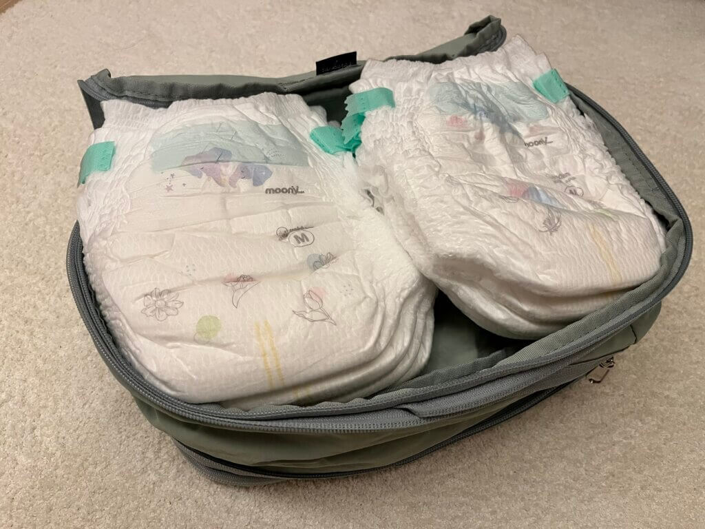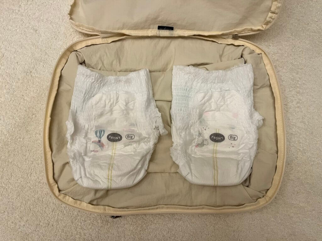 おむつは1枚1枚は軽いのに、旅行日数分を用意すると意外とかさばり、バッグを圧迫します。