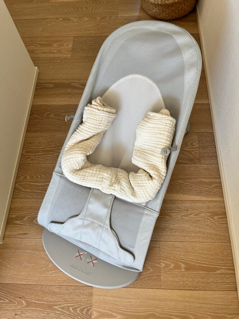 ただ、後述する通り長男、次男共にかなりの頻度でうんち漏れしてしまい、バウンサーの洗い替えは持っていなかったので基本的にバスタオルを敷いて使っていました。