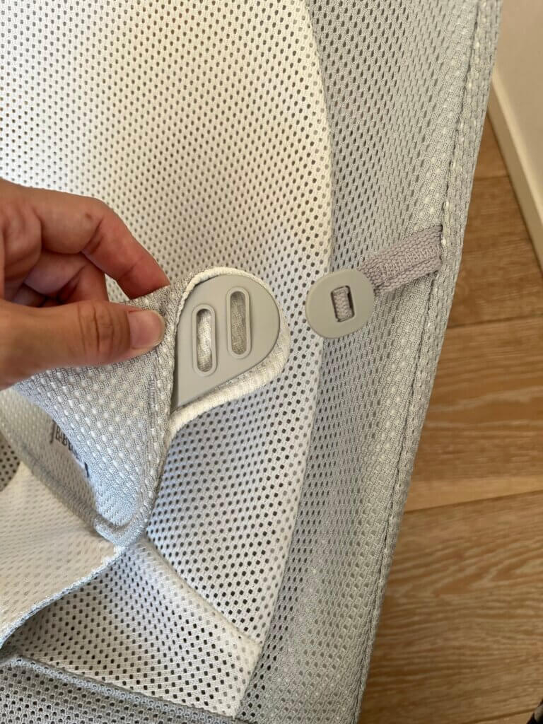 安全性を確保するためか、股ベルト(赤ちゃんを落とさないための留め具)をとめるのががやや硬めで最初は難しいと感じました。